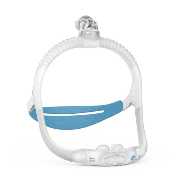 The ResMed AirFit™ P30i is a compact, top-of-the-head nasal pillow CPAP mask designed for active sleepers, offering a secure fit, minimal facial contact, and quiet performance.